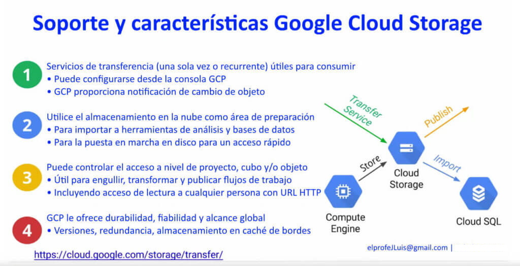 Los servicios GCP son múltiples y uno muy importantes es Google Cloud Storage