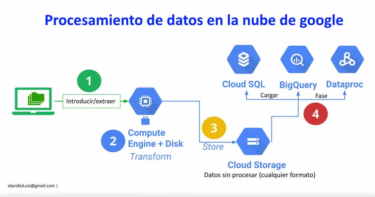 Si quieren procesar los datos en GCP primero tienen que estar en Cloud Storage.