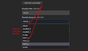 Paso 2: Se deberá sustituir la línea resaltada en color, y guardar la nueva plantilla con un nombre más claro como moodle 8.1, haciendo referencia a la versión de php que estás utilizando.